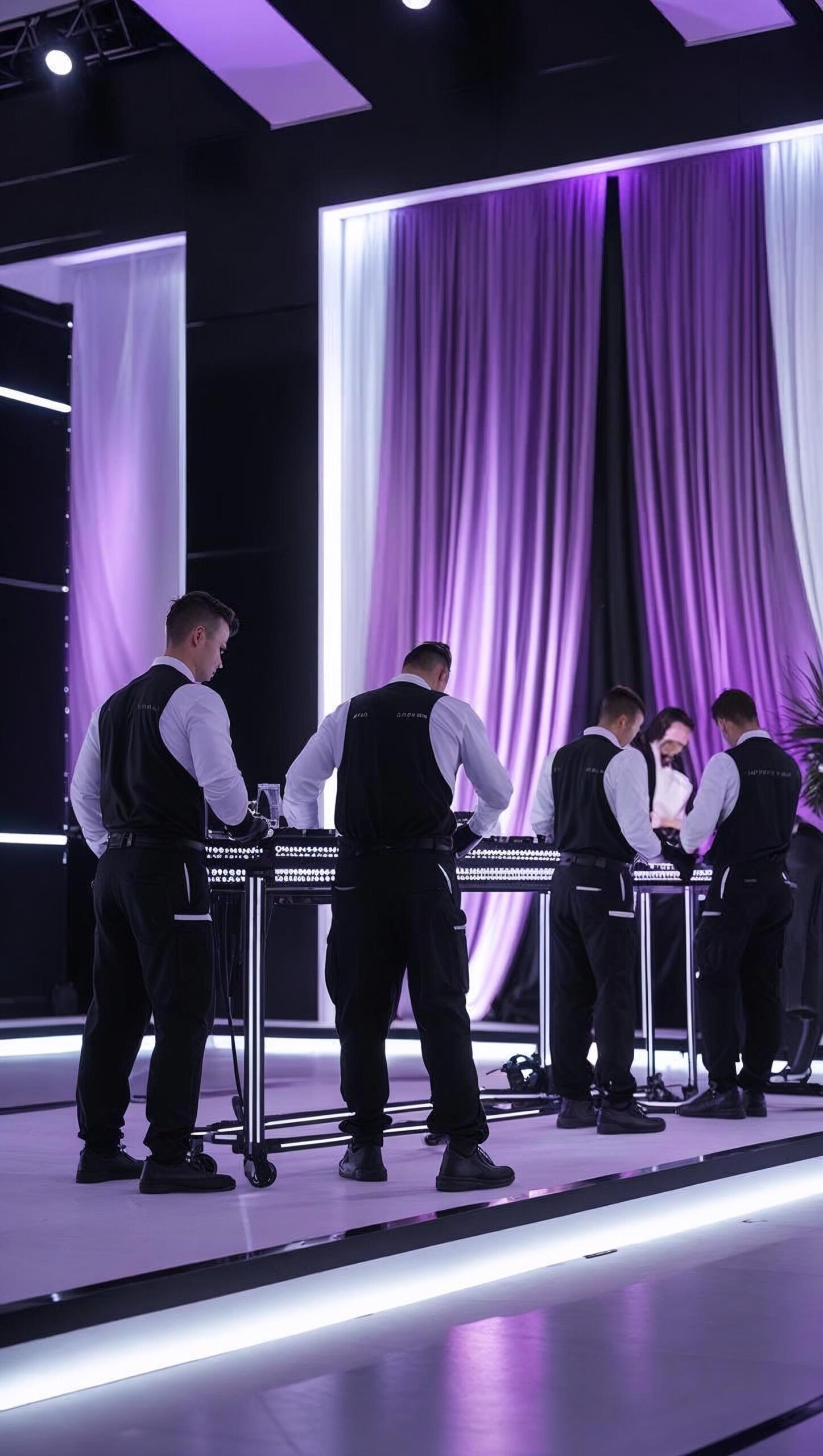 Chaque détail compte dans la réalisation de votre événement. Notre équipe s’assure que tout est en parfaite harmonie, de l’installation technique à la décoration, pour créer une atmosphère captivante.
